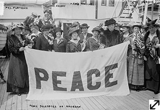 The Woman’s Peace Party was an American organization composed primarily of social reformers who urged the United States not to fight. Select members attended this international meeting in 1915.