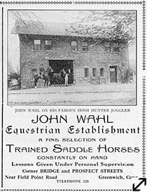 Among those obligated under law to register as enemy aliens were members of the Wahl family. Bavarian-born brothers John and Frederick Wahl immigrated to the United States in the early 1880s after serving in the German cavalry. In 1896 John came to Greenwich from New York City and set up a riding establishment. In 1902 he built his own stable and expanded the business, inviting his brother Frederick to move his family up from Florida and join him. Because the Wahl brothers had not become American citizens, they were required to register as enemy aliens. With the expansion of the definition of “enemy alien” in 1918, their wives were compelled to register as well, even though John’s wife Fanny was a citizen of neutral Switzerland and Frederick’s wife Emelie had been born in Poughkeepsie.
