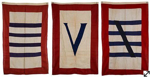 Victory Liberty Loan Flags: Fourth, Fifth, Beginning to End, 1918-1919. Wool bunting, brass grommets. Greenwich Historical Society. Gift of Harry L. Nado.