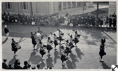 The Fourth Liberty Loan campaign launched the night before at 8:00 p.m. with the ringing of church and fire bells, the blowing of factory whistles and automobiles honking their horns. The next day at 2:30 “the biggest demonstration the town has ever known,” according to the Greenwich News and Graphic, would take place. The parade included “military, fraternal and civic organizations and school children … Ten bands and six drum corps … including the famous Kiltie band of Bridgeport.”