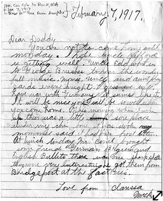Letter from Clarissa MacRae to Elmer MacRae, February 7, 1917. Greenwich Historical Society, William E. Finch, Jr. Archives, Holley-MacRae Family Papers.