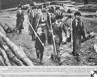 Children made up an important part of the volunteer work force. As Greenwich resident Alexandra Spann remembered later in life, once the War started she stopped playing after school. Instead, she went with her mother to help with Red Cross efforts at the YMCA. A main activity there was knitting garments and accessories for soldiers. Similarly, Horace H. Bassett recalled how he and his boyhood friends knit squares that were assembled into afghan bed coverings at school. He also recalled how the children saved their peach pits and shells of nuts that were gathered at school for use in gas mask filters. At times in these young lives, it must have seemed as if every act had some impact on the War’s outcome.