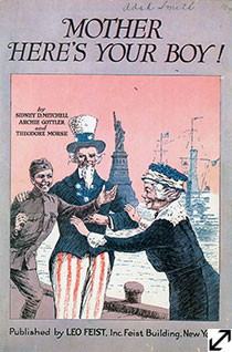 Mother Here’s Your Boy!, 1918. Lyrics by Sidney D. Mitchell (1888-1942), Archie Gottler (1896-1959) and Theodore F. Morse (1873-1924). Music by Sidney D. Mitchell (1888-1942). Published by Leo Feist, Inc. Lent by Stefanie Kies.