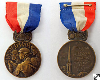 These bronze medals were presented to Greenwich service personnel at a “Welcome Home” dinner dance held on July 4, 1919.